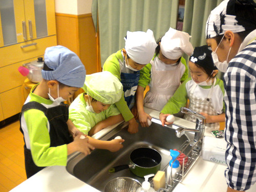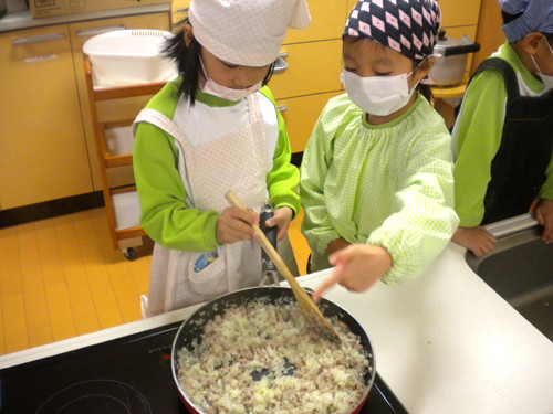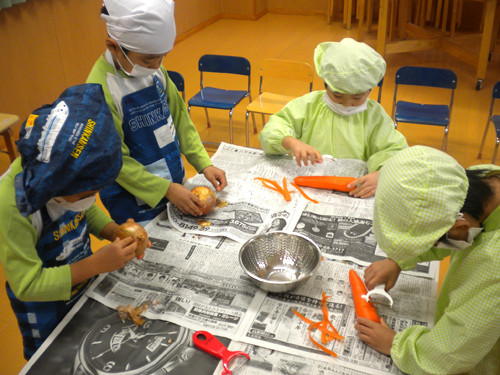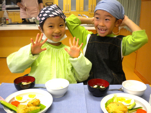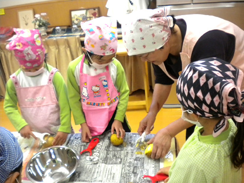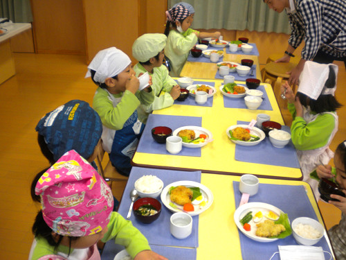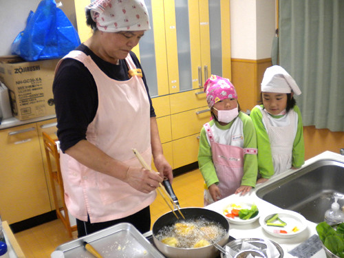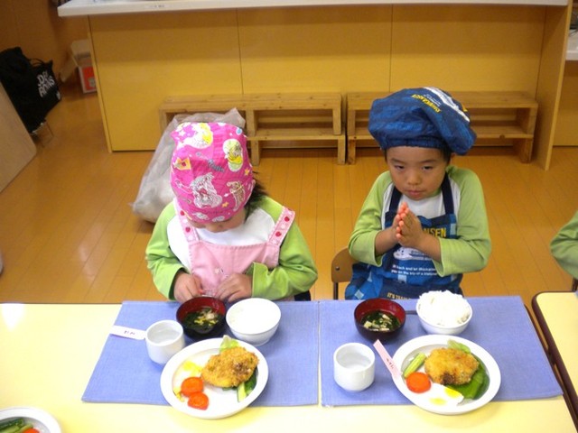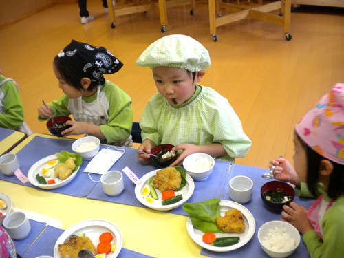 今日の給食(夏見台幼稚園・保育園)2012.11.26 鮭の西京焼き&キッズクッキング