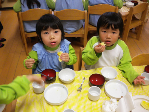 今日のおやつ(保育園と幼稚園Bコース、Aコース預かり保育)は、