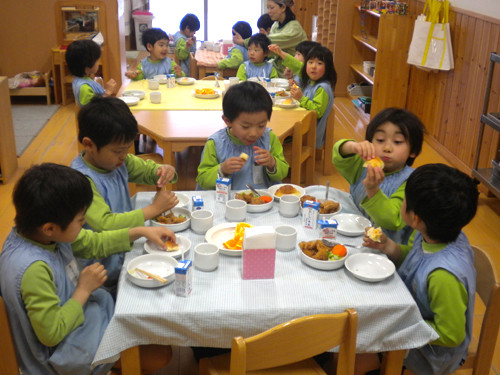 今日の給食(夏見台幼稚園・保育園)2013.3.27 チキンカツ