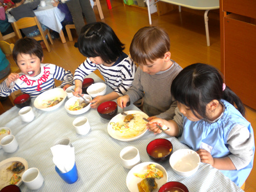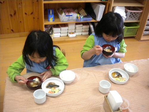 今日の給食(夏見台幼稚園・保育園)2013.4.1 さばの味噌煮