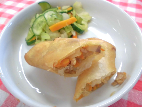 中には、ひき肉・人参・竹の子・干し椎茸・春雨がたっぷり詰まっています♪