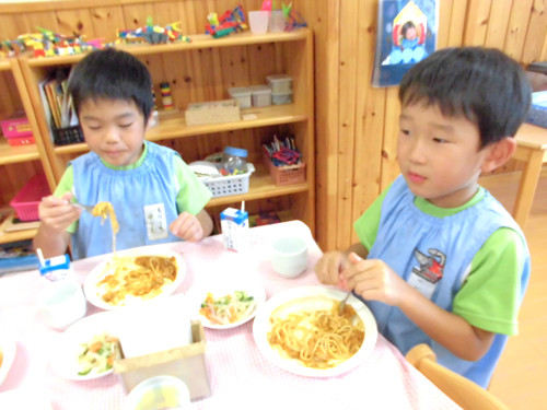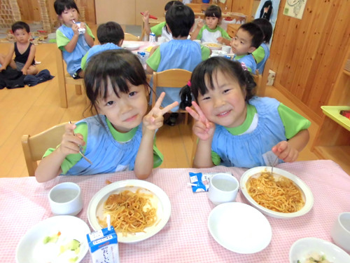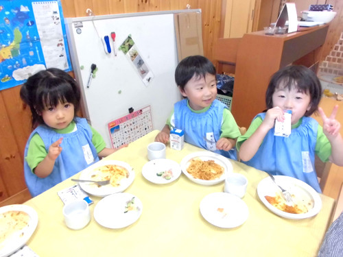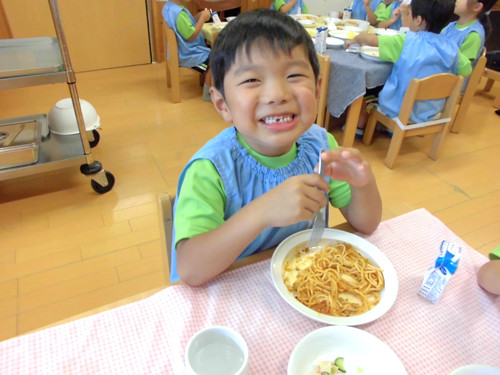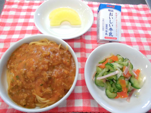 今日の給食(夏見台幼稚園・保育園)2014.9.22 スパゲティミートソース