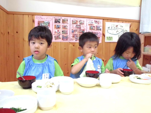 「今日の給食は何を切ったの?」「これ、なぁに?」