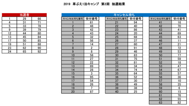 サマーキャンプ草ぶえ第2回 結果