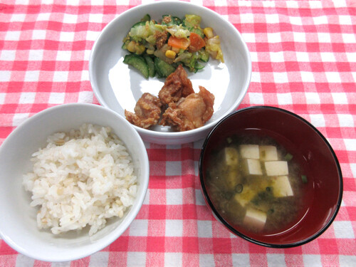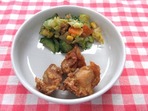 今日の給食(夏見台幼稚園・保育園)2020.4.1 からあげ