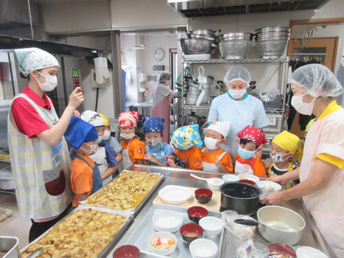 普段は入ることができない給食室ということで、エプロン三角巾の支度をする段階からわくわくそわそわ!