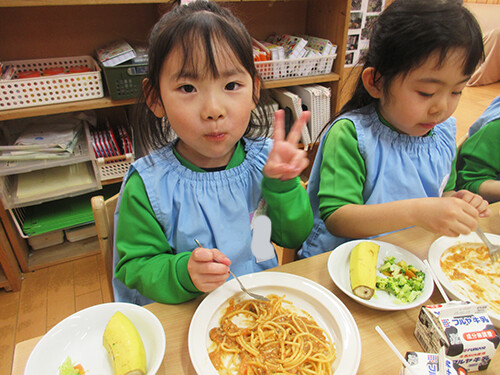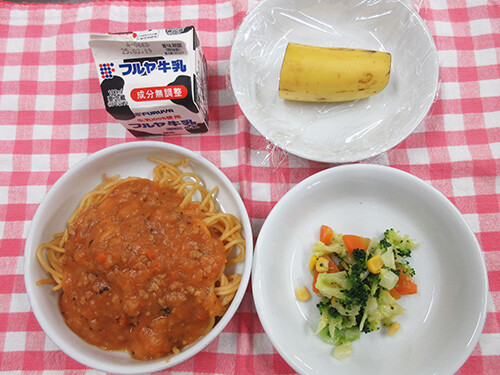 スパゲティミートソースは、子ども達に人気ナンバーワンの給食メニューです。